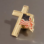 American Flag with Gold Cross Enamel Lapel Pin
