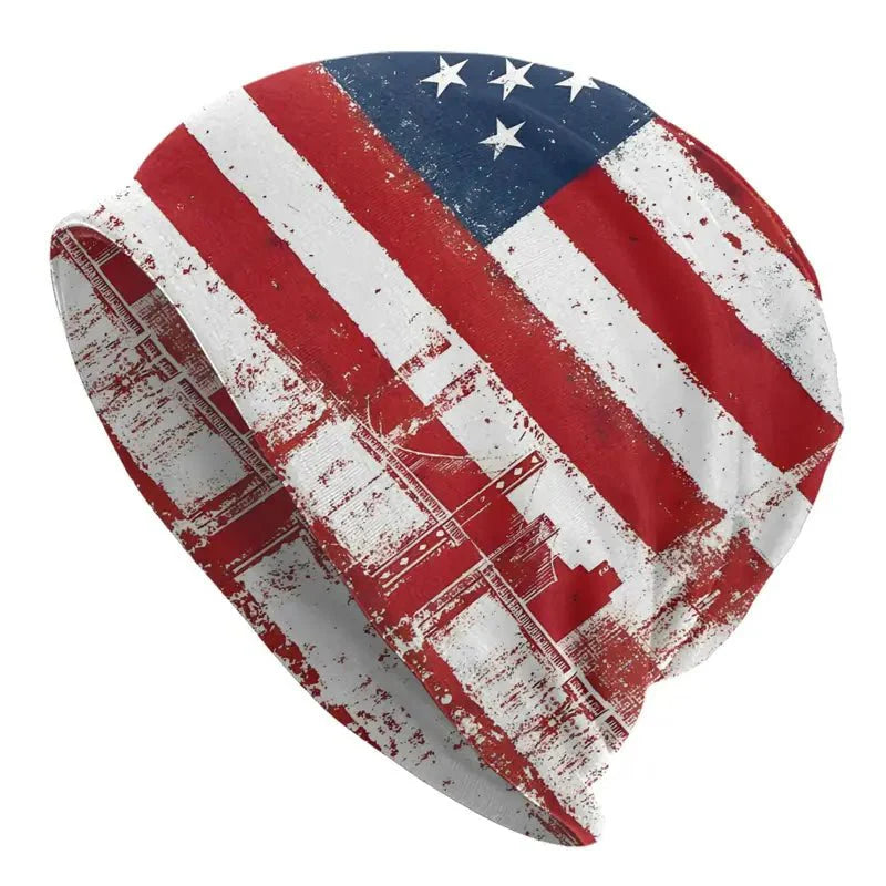 Distressed American Flag Skull Knit Beanie